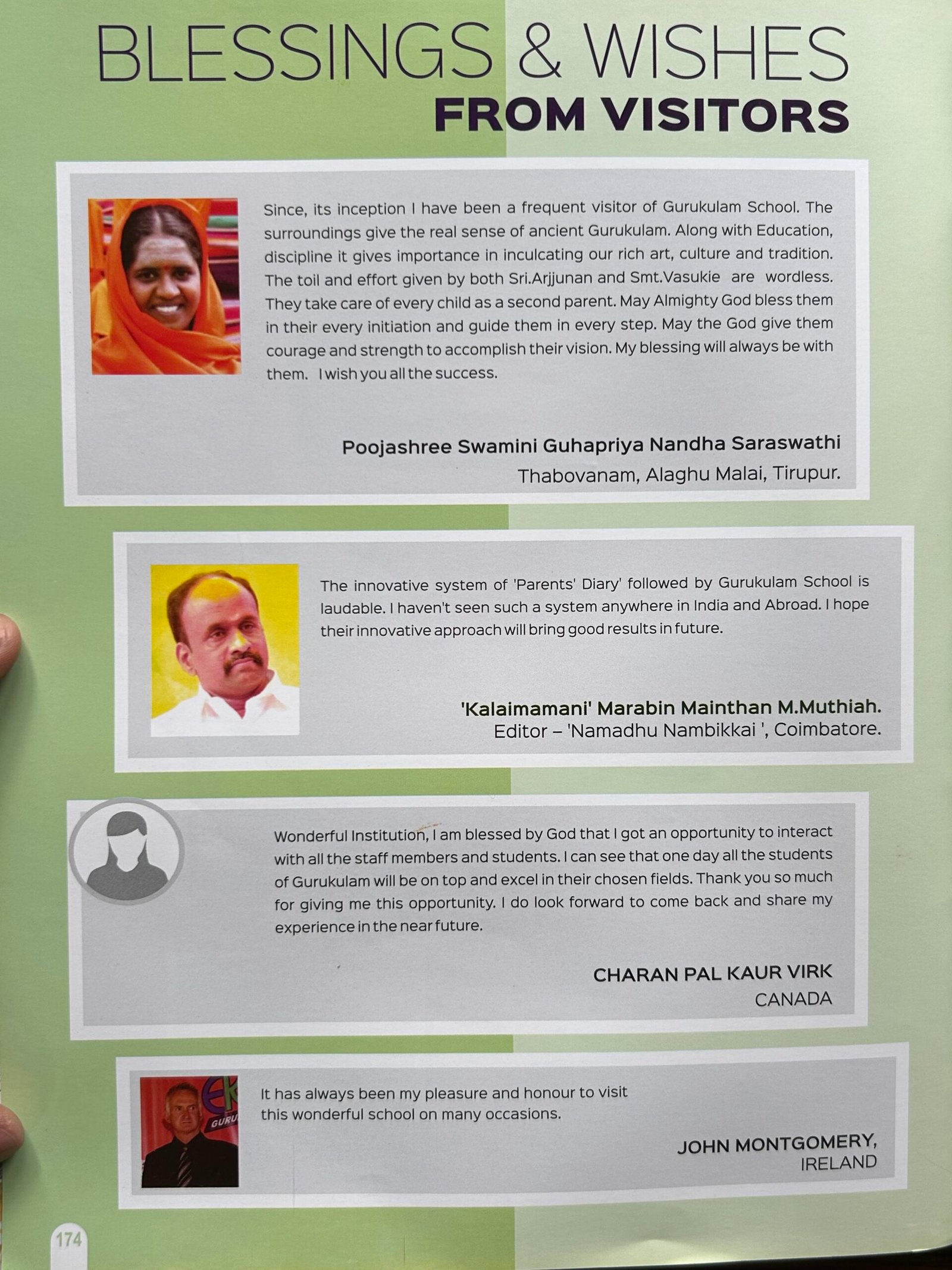 Ambassadors View Our Gurukulam School has a long vision to make our students worldwide reaching opportunities. Here are some of ambassador’s events. John Montgomery, Ireland