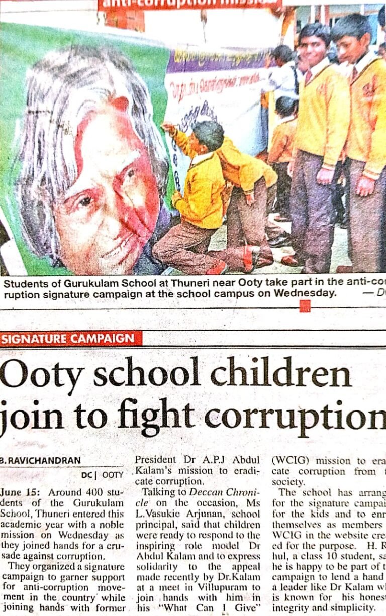 Gurukulam school initiates anti-corruption movement in young minds.